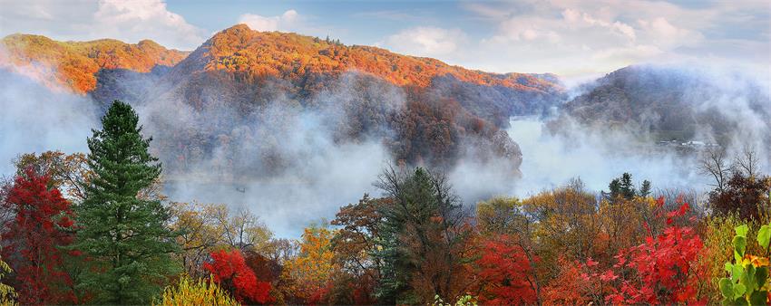 霧漫松江俏秋山